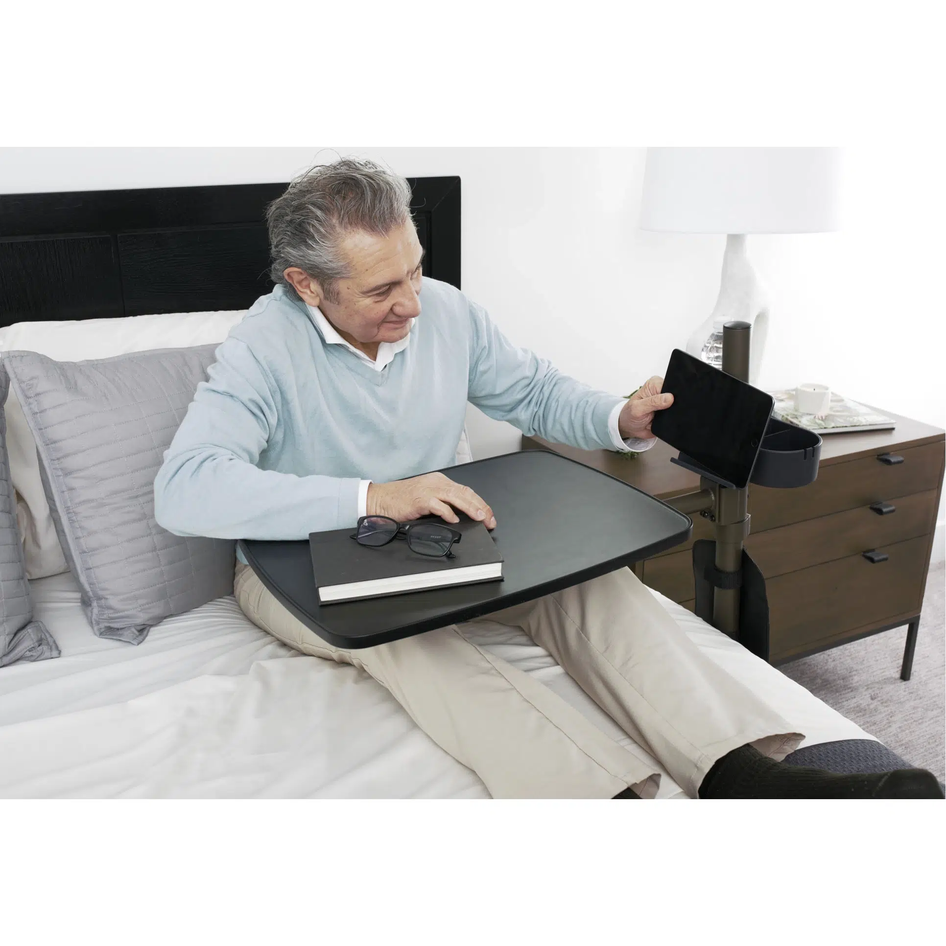 - Multi-Use Overbed Table – 23.5” L x 15” D tray table for eating, work, or leisure